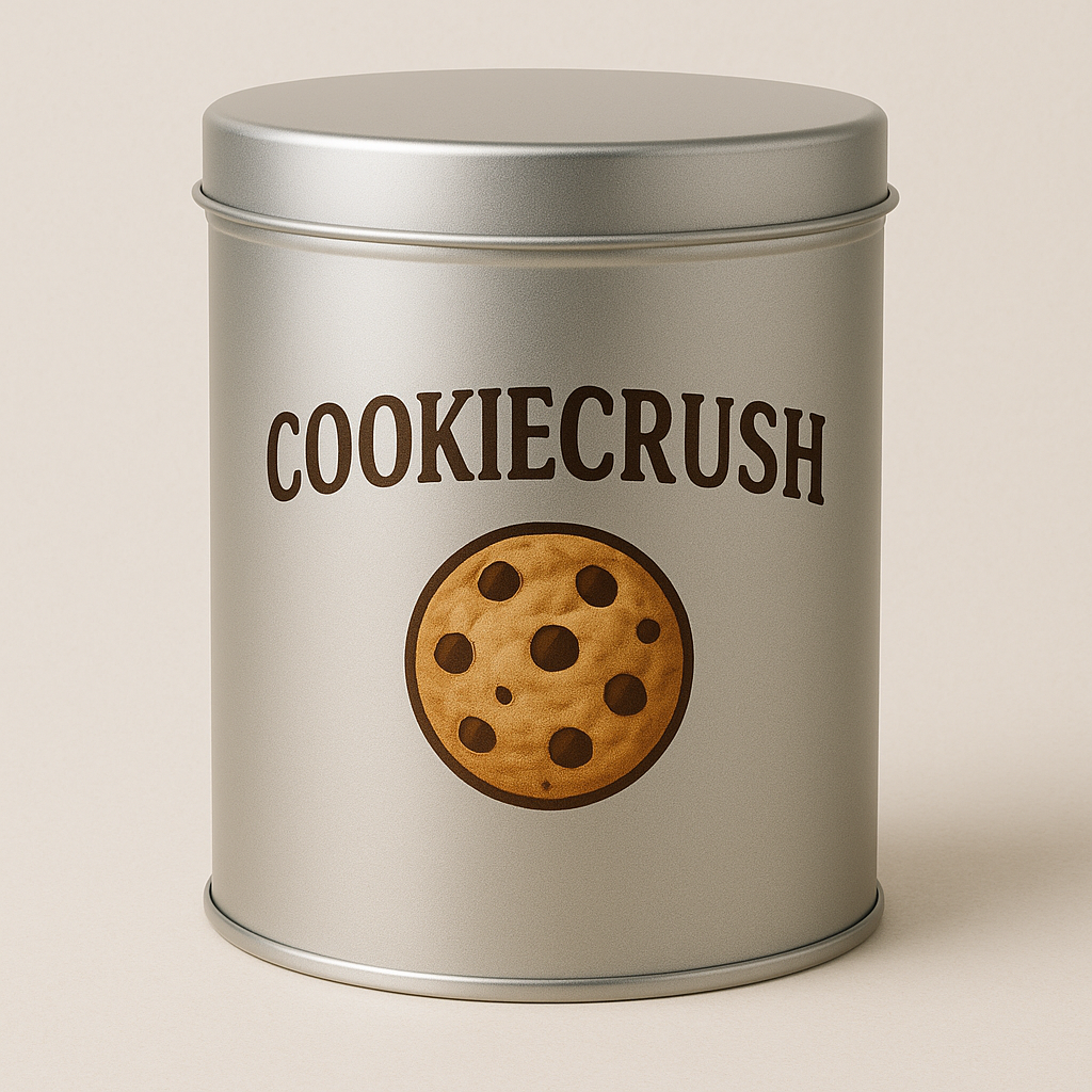 Elegante CookieCrush Metalldose im minimalistischen Design. Ideal zur Aufbewahrung deiner Lieblingscookies – hält sie frisch und aromatisch.